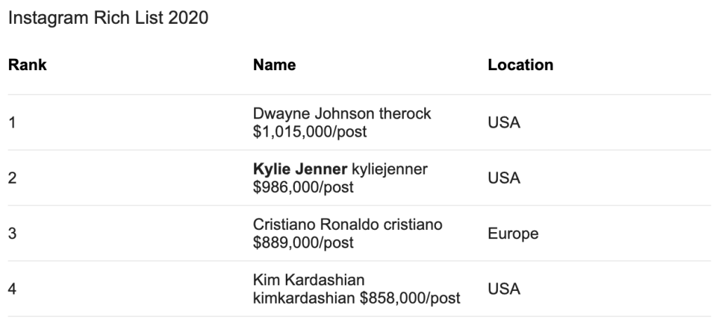 Macro Influencer: Usually they gain popularity by producing differentiated content like VLOGGING or PRODUCING INSPIRING content. They rank high up the chain of popularity.
