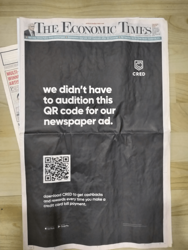 The TVC is being pushed with a newspaper advertisement across national dailies. The spends even in these time have been like never before to ensure that the app captures more users. A possible anticipation that with the slowdown and lower earning, people are living on Credit cards.